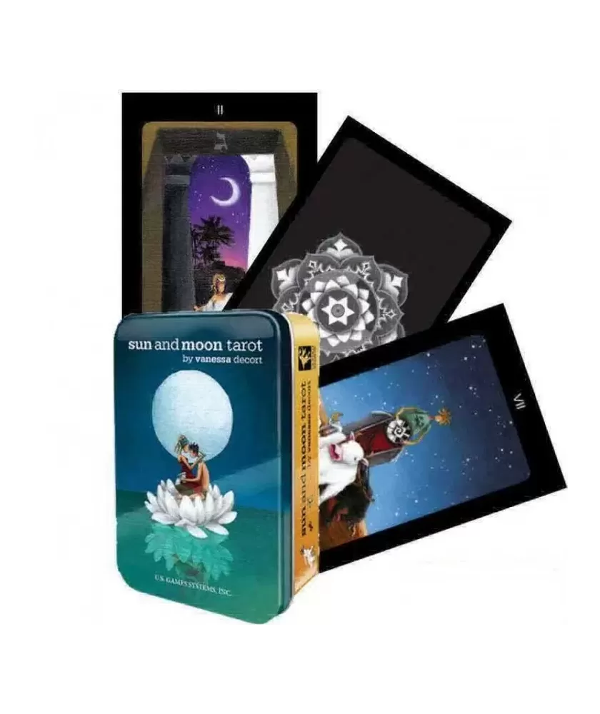Sun And Moon Tarot In A Tin – Tarot Deck oferă o experiență profundă și accesibilă pentru pasionații de tarot, combinând tradiția cu simboluri din mitologia hindusă, egipteană și greacă, precum și elemente din yoga, I Ching și Rune. Acest pachet este potrivit atât celor care încep călătoria cu tarotul, cât și celor care caută o perspectivă multiculturală și artistică.