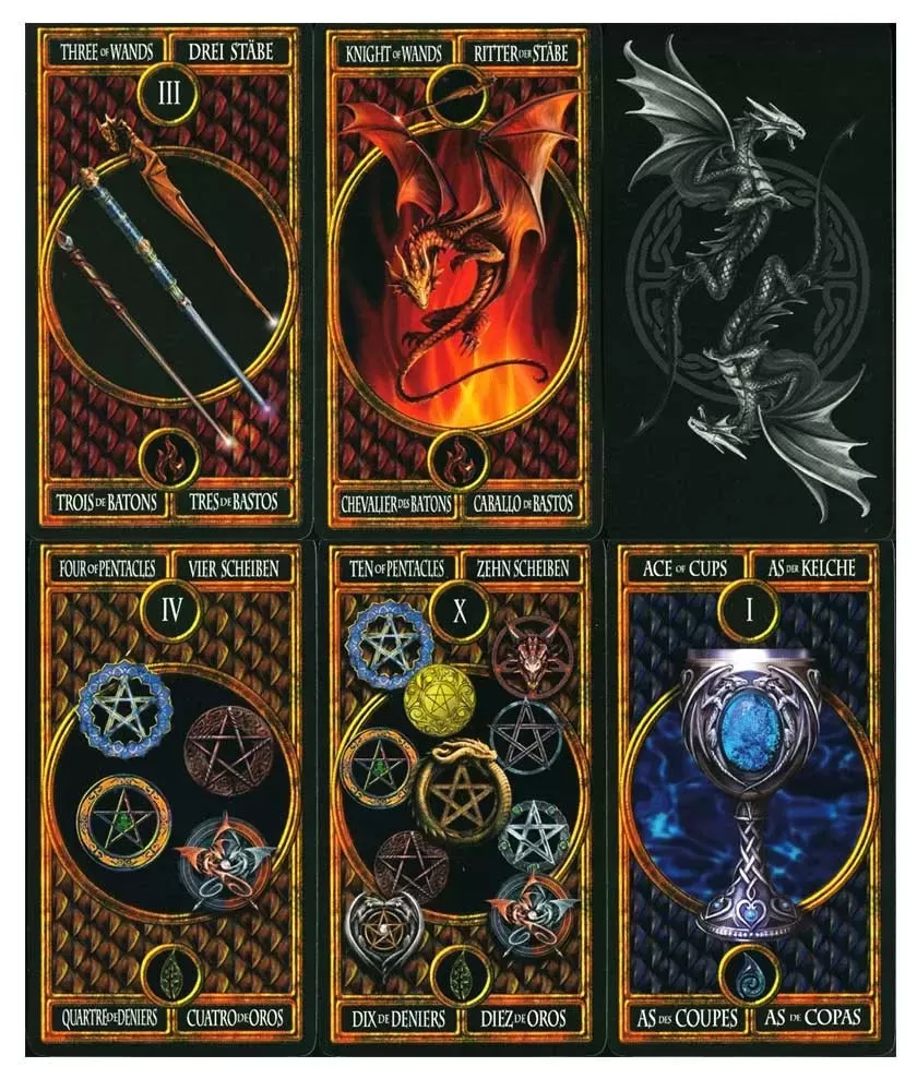 Fiecare dintre cele 78 de cărți este realizată din carton plasticat de înaltă calitate, având dimensiunile clasice de 60x110 mm. Ilustrațiile Annei Stokes aduc la viață energia puternică și misterioasă a dragonilor, oferind o experiență vizuală captivantă și unică. Deck-ul include instrucțiuni în mai multe limbi, fiind un produs original, realizat în Spania de Fournier.