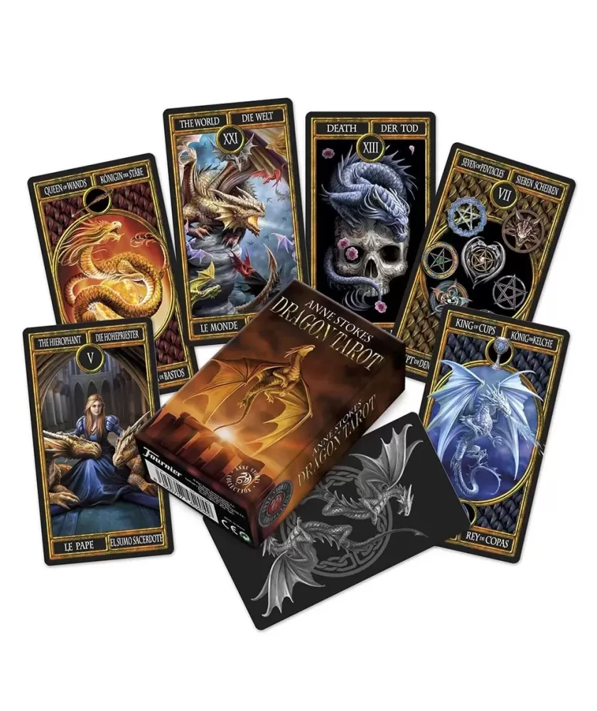 Acest tarot este ideal atât pentru practicanții experimentați, cât și pentru cei care doresc să-și aprofundeze înțelegerea simbolurilor mistice. Dragons Anne Stokes – Tarot Deck este un companion elegant și inspirator în explorarea propriei căi spirituale.