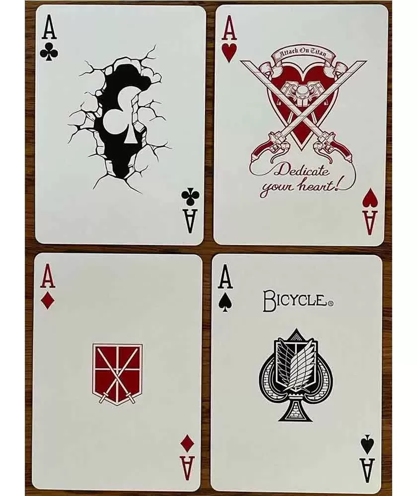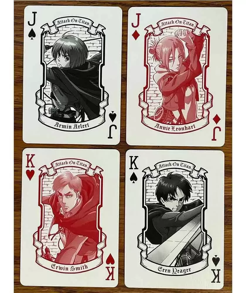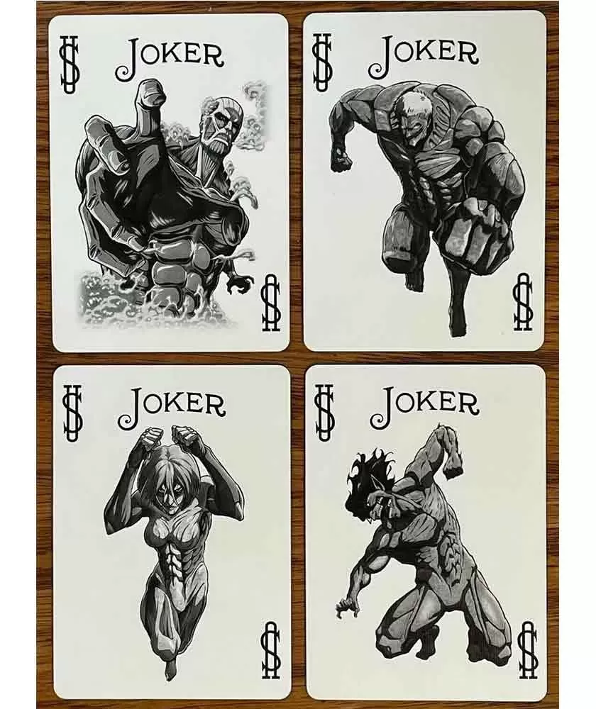 Realizate în SUA, aceste cărți se remarcă prin calitatea superioară a materialelor și imprimării, ce subliniază fidelitatea ilustrativă inspirată din universul creat de Hajime Isayama. Designul sofisticat și tematica atent integrată fac din acest pachet o alegere ideală atât pentru jocurile de familie, cât și pentru colecțiile tematice.
