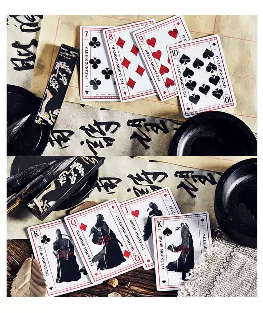 Fabricate în SUA de USPCC, aceste cărți de joc se remarcă prin calitatea tiparului și durabilitatea materialelor, fiind potrivite atât pentru colecționari, cât și pentru utilizarea în jocuri clasice sau magii de nivel avansat. Caligrafia tradițională chineză și simbolurile antice oferă o atmosferă distinctă, ce îmbină estetica cu funcționalitatea.