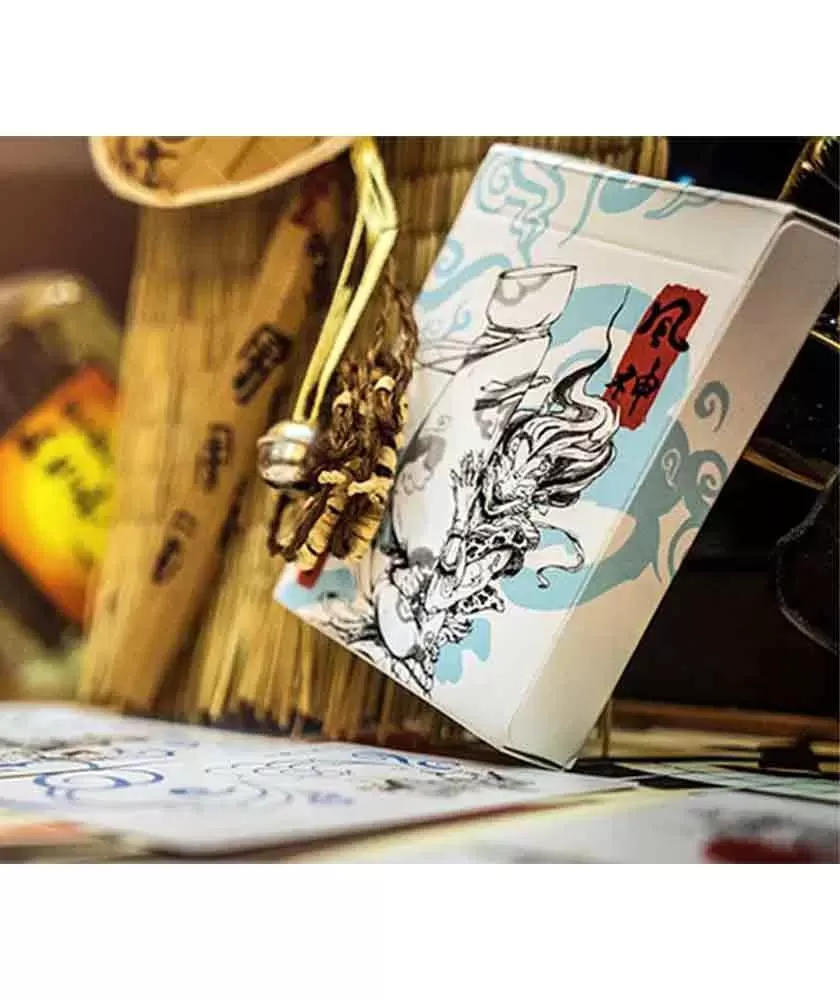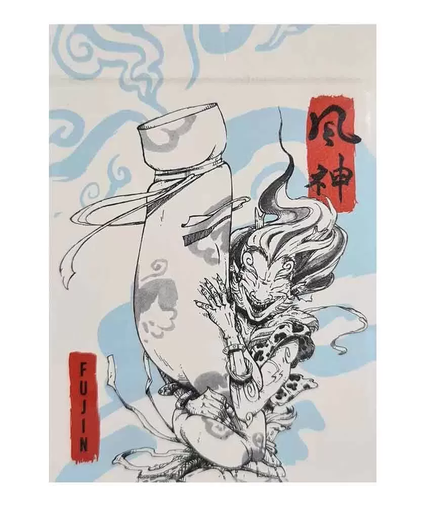 Fujin BOMBMAGIC – Playing Cards aduce în prim-plan o colecție elegantă de cărți de joc inspirate din legendarele povești japoneze despre zeii vântului și tunetului, Fujin și Raijin. Acest set este destinat celor care apreciază arta premium și cultura asiatică, oferind o atmosferă distinctă fiecărui joc.