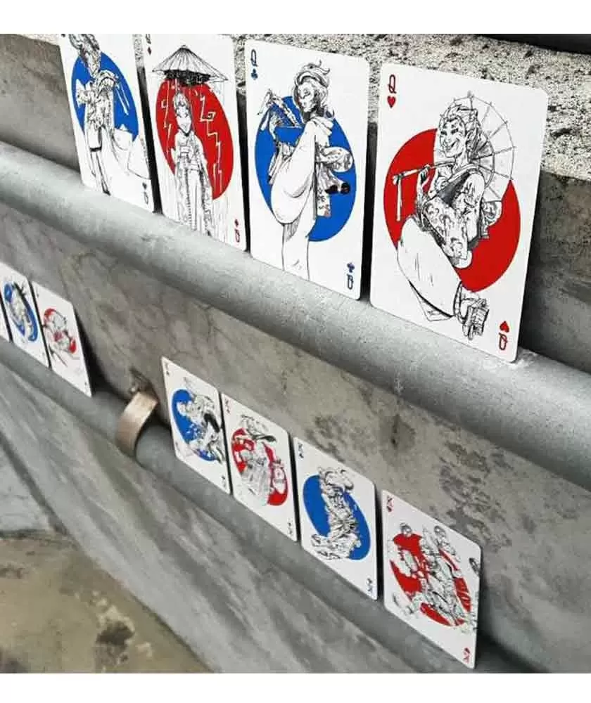 Designul exclusiv al acestui pachet a fost creat de ilustratorul Fionn Jordan, cunoscător al esteticii asiatice, care a realizat fiecare detaliu cu o atenție deosebită, pornind de la zero. Materialele folosite și imprimarea de către Taiwan Playing Cards asigură o calitate superioară, cu finisaje luxoase și o rezistență optimă pentru utilizare îndelungată.