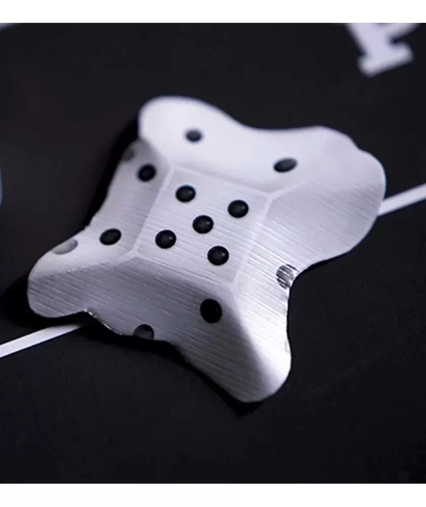 Designul distinctiv al cărților impresionează prin spatele animat și marginile negre, care adaugă un aer sofisticat și modern. Cartile de curte personalizate sunt special create pentru a susține trucurile de magie, iar jokerii sunt adaptați pentru efecte speciale. În plus, pachetul include un zar strivit din carton și instrucțiuni video realizate de Danny Chang, care te ajută să stăpânești efectul Squished Die.