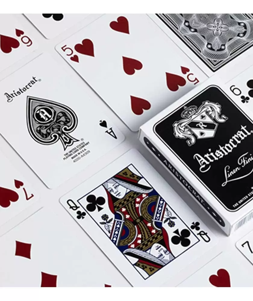 Cărțile sunt realizate cu atenție meticuloasă la detalii, folosind carton foarte subțire (thin stock) ce asigură manevrabilitate optimă și durabilitate. Designul iconic Aristocrat, reinterpretat în varianta Black Signature Edition, reflectă un stil sofisticat, potrivit atât pentru jocurile clasice, cât și pentru colecționari sau magicieni.