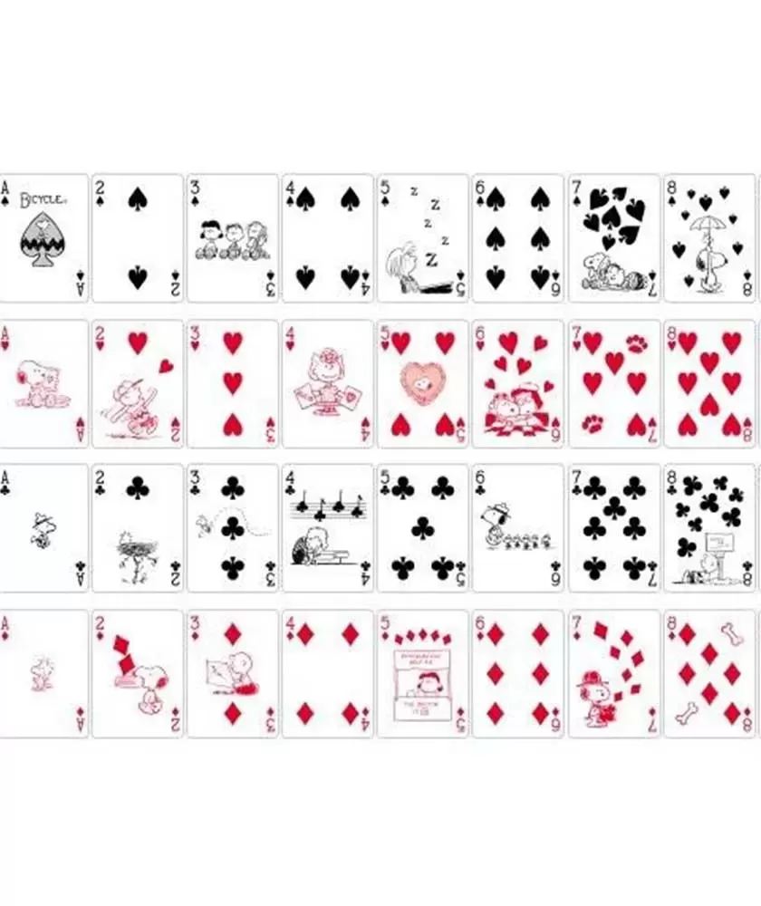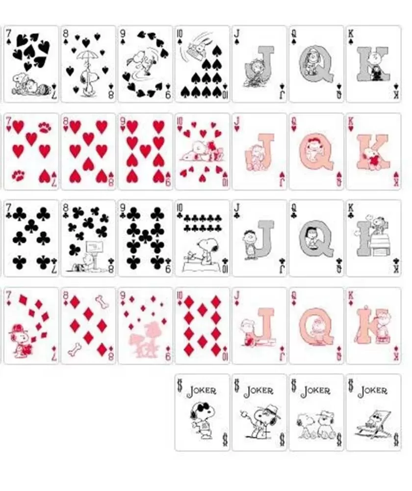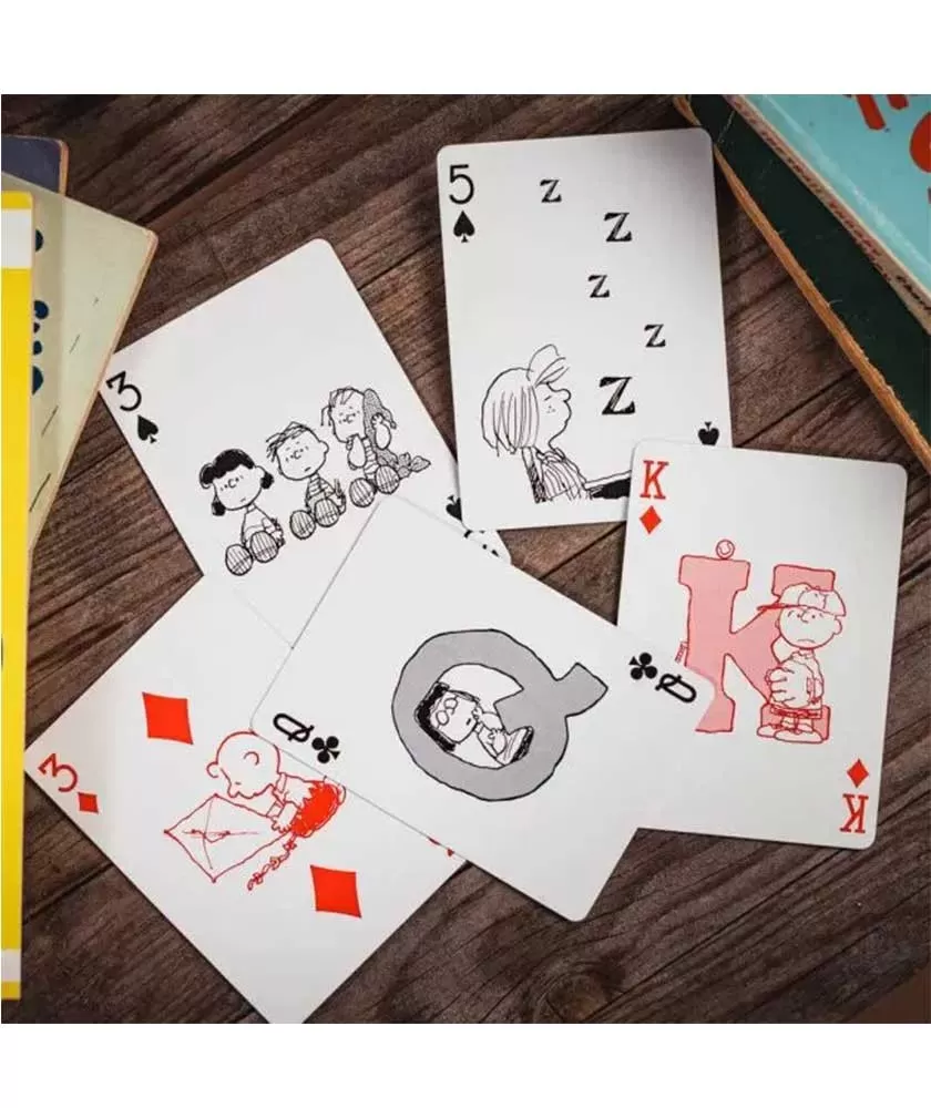 Fiecare carte surprinde scene și personaje familiare din universul Peanuts, iar spatele cărților este decorat cu imaginea lui Snoopy, adăugând un plus de personalitate și nostalgie. Fabricate în SUA, aceste cărți se remarcă prin finisajul premium și durabilitatea materialelor, fiind perfecte atât pentru colecționari, cât și pentru utilizare în jocurile de familie sau competiții.