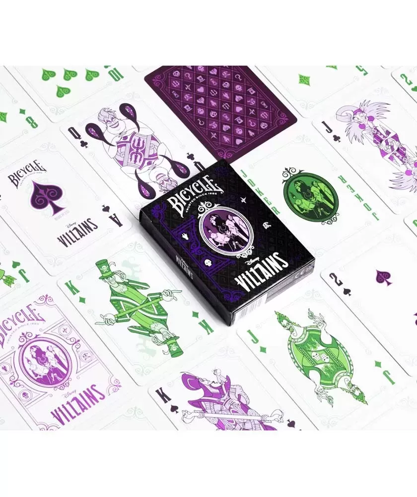 Bicycle Disney Villains Purple – Playing Cards aduce în colecția ta un set exclusivist, dedicat fanilor universului Disney și pasionaților de cărți de joc premium. Acest pachet remarcabil evidențiază 12 personaje iconice negative, fiecare ilustrat cu atenție artistică pe fețele cărților, oferind o experiență vizuală captivantă și sofisticată.