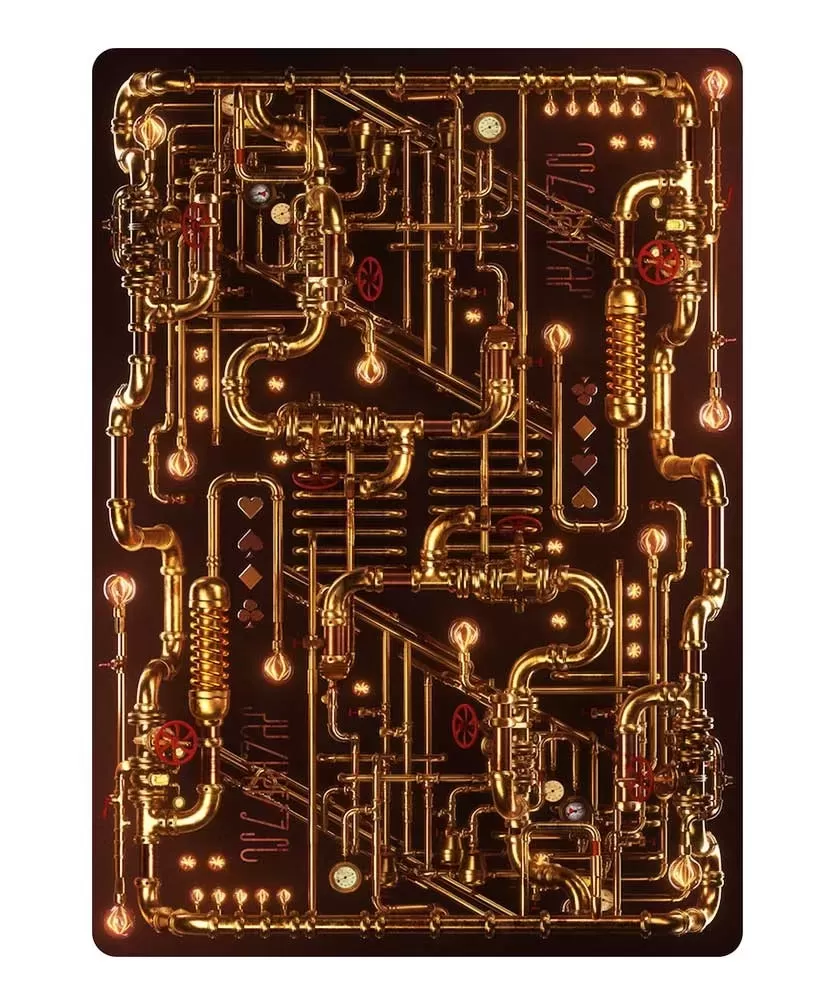 Fiecare carte este realizată din carton premium cu un print de înaltă calitate, folosind un stock german de 310 gsm, asigurând durabilitate și aspect impecabil. Cutia, cu un design în nuanțe argintii, este embosată și fabricată dintr-un material de 330 gsm, oferind un plus de sofisticare. Cartile de curte renunță la reprezentările tradiționale, fiind înlocuite cu obiecte stilizate care accentuează tematica steampunk.