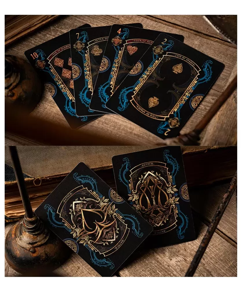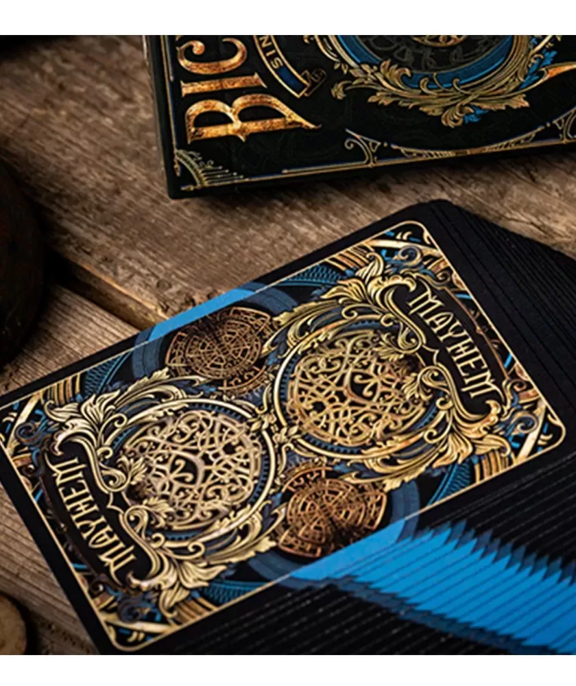 Fiecare carte este atent realizată, cu simboluri impresionante ce reflectă tematica haotică și creativă a seriei Mayhem. Producția americană garantează materiale durabile și finisaje impecabile, ce oferă o manevrabilitate confortabilă și o experiență vizuală unică. Bicycle, brand cu tradiție, rămâne un reper în lumea cărților de joc premium.