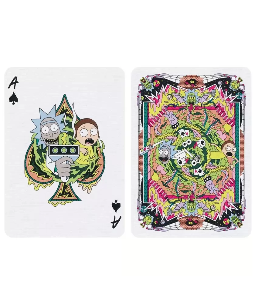 Designul exclusiv este realizat de Theory11 și imprimat de USPCC, garantând un finisaj Air Cushion ce asigură o manevrabilitate excelentă și durabilitate. Fiecare carte este imprimată pe carton de înaltă calitate, cu indici standard și dimensiune poker. Pachetul este sigilat cu un sticker ce înfățișează celebrul borcan Pickle Rick, adăugând un detaliu autentic și atractiv.