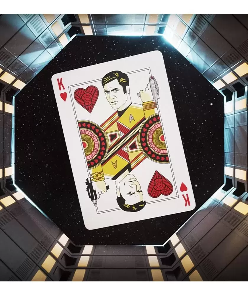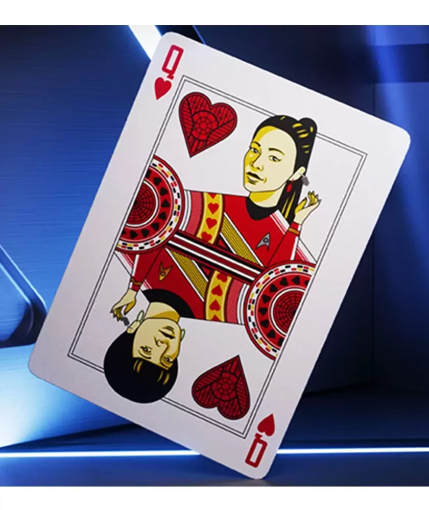 Star Trek Dark – Playing Cards aduce în joc spiritul aventurii și explorării din universul Star Trek, capturând esența curajului și misterului frontierelor necunoscute. Acest set premium este dedicat atât fanilor francizei, cât și colecționarilor pretențioși care apreciază designul artistic și materialele de calitate superioară. Fiecare carte este ilustrată cu personaje emblematice precum captain Kirk, Spock și Hikaru Sulu, adăugând un plus de valoare estetică și tematică.