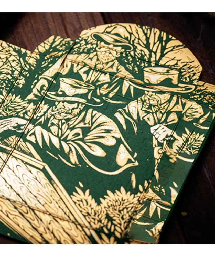 Fabricate de Riffle Shuffle Playing Card Co. (RSPCC), aceste cărți beneficiază de un finisaj de lux, recunoscut pentru durabilitate și manevrabilitate optimă. Fiecare detaliu este personalizat artistic, reflectând tematica distinctă a ediției Verdant Dawn, evidențiind nuanțe și elemente vizuale ce invită la explorare și apreciere estetică.