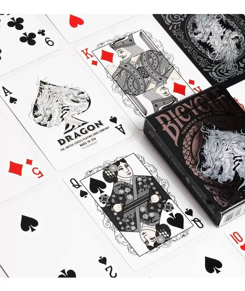 Fie că le folosești pentru cardistry, colecționare sau jocuri speciale, Bicycle Dragon Black Playing Cards oferă un echilibru ideal între funcționalitate și estetică. Acest set este o alegere inspirată pentru cei ce caută calitate și eleganță într-un pachet de cărți de joc.