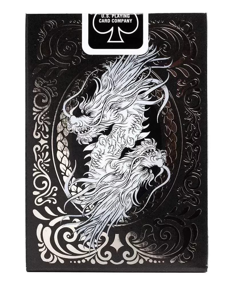 Fabricate de USPCC, aceste cărți impresionează prin cartonul durabil și finisajul Air Cushion, care asigură o manipulare fină și o rezistență crescută în timp. Designul unic cu motive dragonice negre adaugă un aer misterios și sofisticat, făcându-le o piesă de colecție remarcabilă și un instrument perfect pentru performanțe vizuale în arta manipulării cărților.
