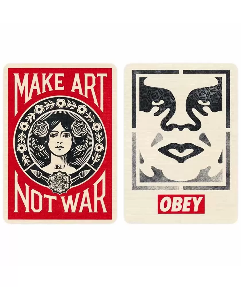 Obey Collage Edition – Playing Cards este o colecție remarcabilă care combină arta contemporană cu funcționalitatea unui pachet de cărți de joc premium. Acest set emană o energie provocatoare, invitând utilizatorii să reflecteze asupra temelor de putere, control și influență culturală. Designul său artistic este rezultatul unei colaborări cu brandul Theory11, recunoscut pentru calitatea și atenția la detalii.