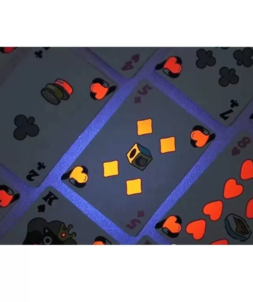Printate în SUA, cărțile utilizează o cerneală fluorescentă specială care strălucește subtil sub lumina UV, evidențiind detaliile fine ale ilustrațiilor. Finisajul cu textură de pernă de aer asigură o manevrabilitate excelentă și o durabilitate crescută, ideale atât pentru colecționari, cât și pentru cei care doresc să adauge un plus de stil jocurilor de familie sau serilor de poker.
