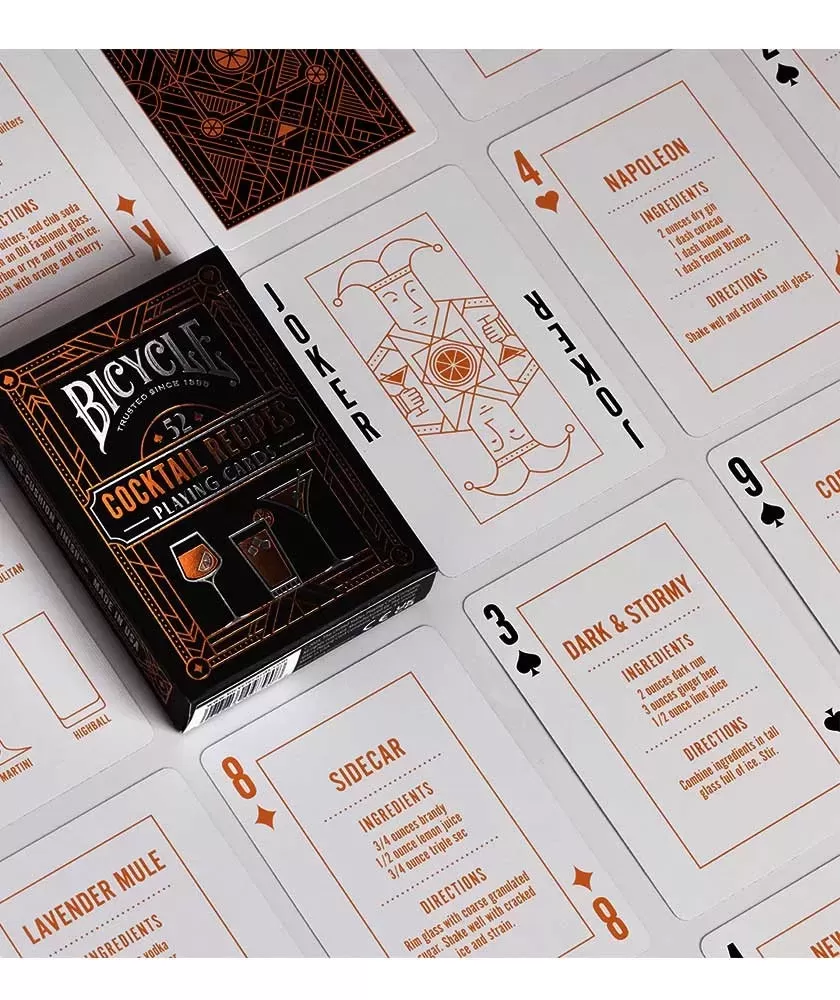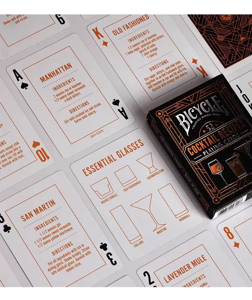Fiecare carte este finisată cu accente delicate de cupru și argint ce evidențiază atenția la detalii și calitatea superioară a produsului. Fabricat de Bicycle, un brand recunoscut pentru excelență în producția de cărți de joc, acest set este ideal pentru colecționari, iubitori de mixologie sau pentru cei care doresc să transforme fiecare joc într-o experiență rafinată și interactivă.
