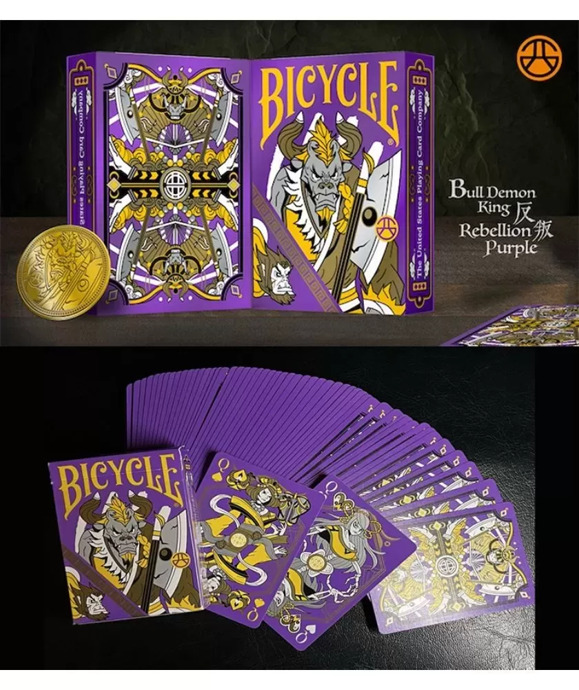 Bicycle Bull Demon King Rebellion Purple – Playing Cards aduce un suflu artistic și cultural colecției tale de cărți de joc, evocând energia mitologiei chineze reinterpretate printr-o estetică modernă manga. Acest set este perfect atât pentru colecționari, cât și pentru iubitorii de artă și cultură asiatică, oferind o experiență vizuală unică.
