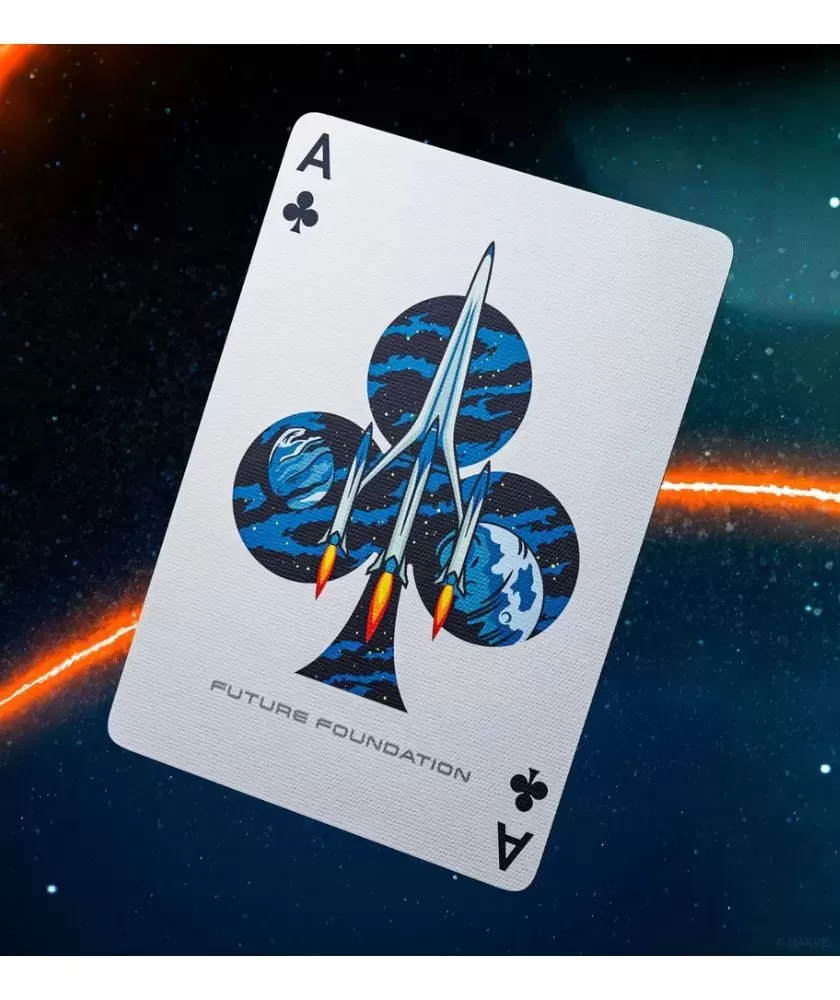 Fiecare carte este ilustrată manual, punând în prim-plan personaje iconice precum Mister Fantastic, Invisible Woman, Human Torch și The Thing, alături de figuri legendare ca Silver Surfer și Galactus. Designul vibrant și embosarea atent realizată adaugă profunzime și rafinament, transformând fiecare pachet într-un obiect de artă ce reflectă aventura cosmică a universului Fantastic Four.