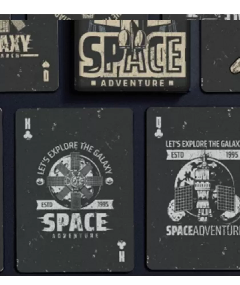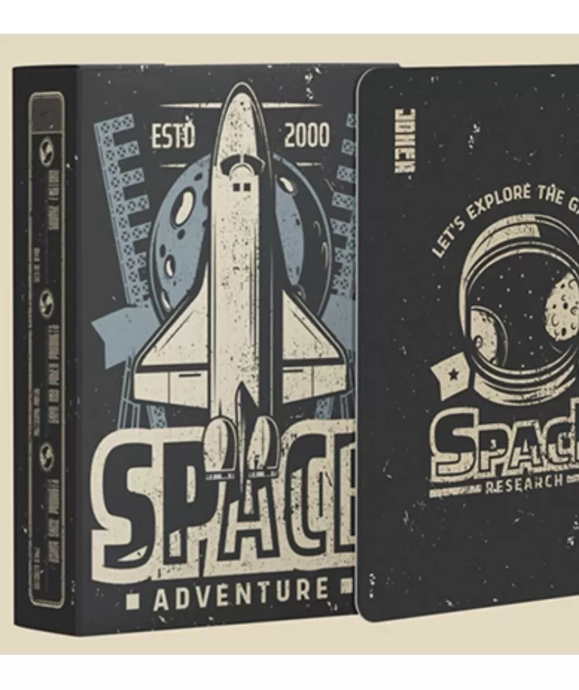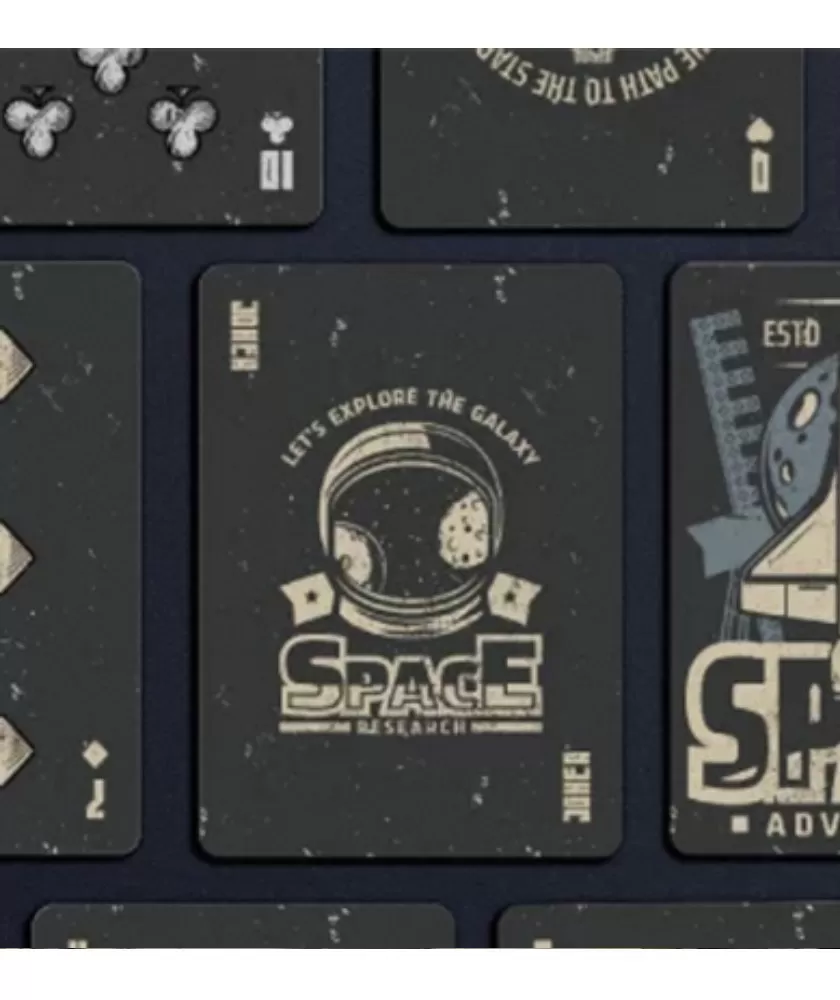 Fiecare carte este ilustrată cu elemente precum navete spațiale, planete, sateliți și căști de astronaut, toate realizate cu atenție la detalii și personalizate complet pentru a crea o colecție exclusivă. Cartonul de calitate casino 310gsm, cu black core și finisaj linen, asigură durabilitate și o manipulare excelentă, fiind ideal atât pentru trucuri de magie cât și pentru cardistry.