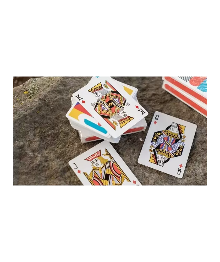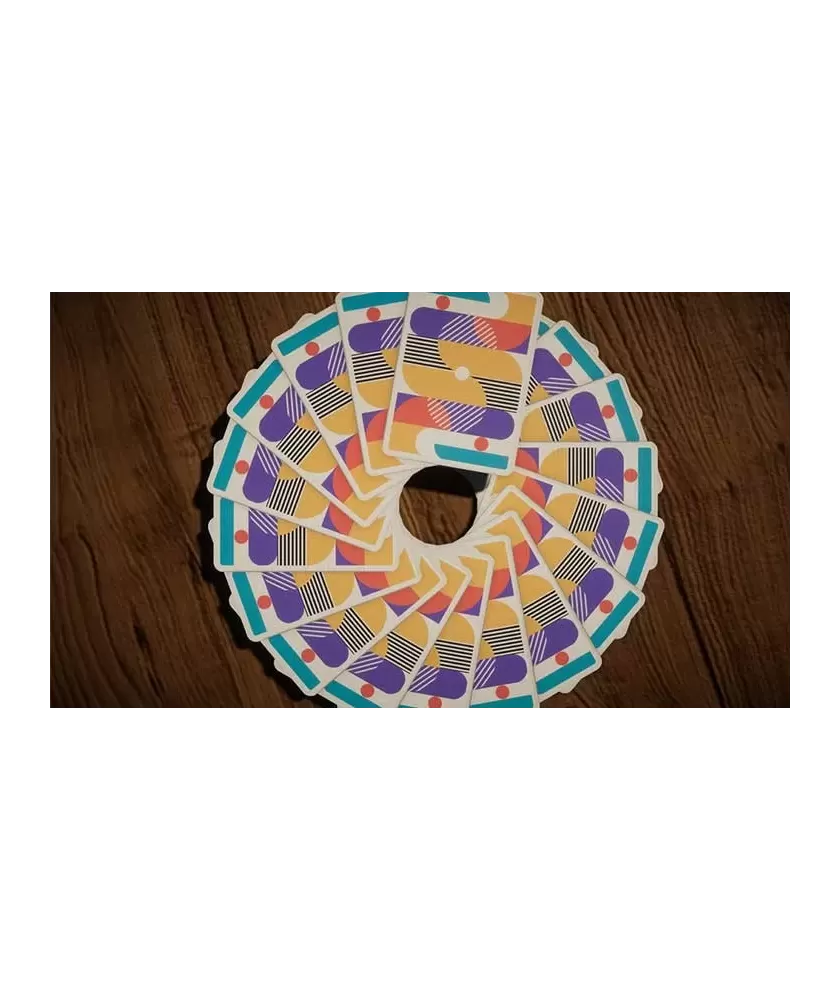 Fiecare carte este imprimată de USPCC în SUA, folosind tehnologia de printare CMYK, care aduce la viață culori vibrante și detalii fine. Designul îmbină armonios linii, cercuri și forme geometrice, creând un echilibru vizual ce îl face ideal pentru colecționari, jucători și entuziaști ai cardistry-ului. Cartonul triplu stratificat și finisajul Air Cushion asigură rezistență, flexibilitate și o manevrabilitate excelentă.