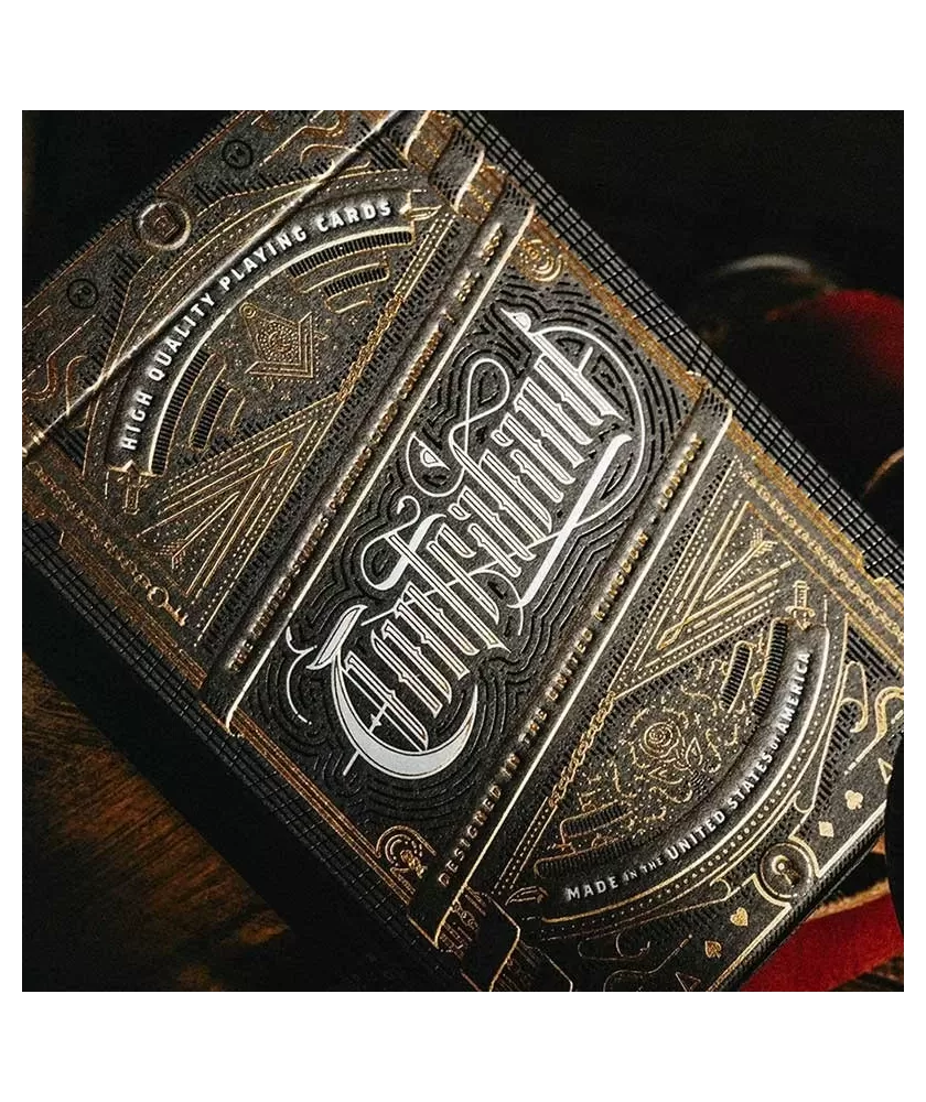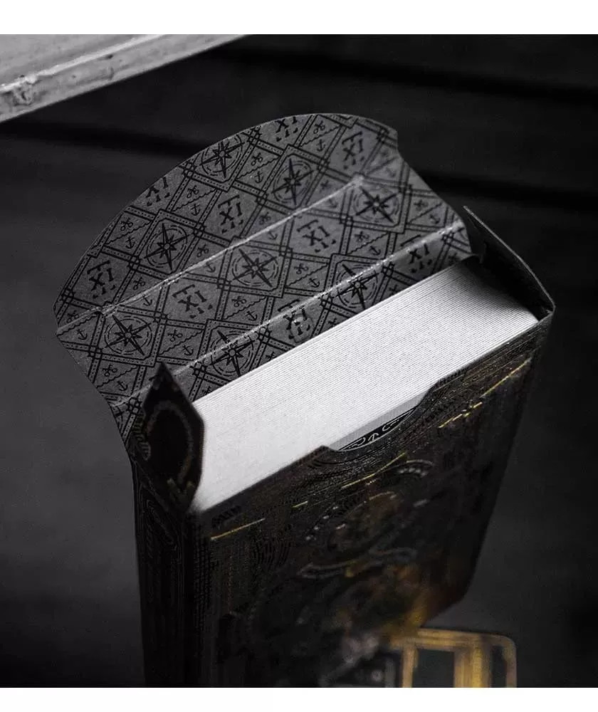 Designul a fost creat în Regatul Unit de Joe White, inspirat de societăți secrete și teorii ale conspirației, iar fiecare carte este realizată cu o atenție remarcabilă la detalii. Fiecare as, joker și figură regală este desenată cu precizie, iar cutia neagră cu inserții aurii și relief conferă o senzație premium și misterioasă. Producția este realizată în Statele Unite, garantând calitatea materialelor și a finisajelor.