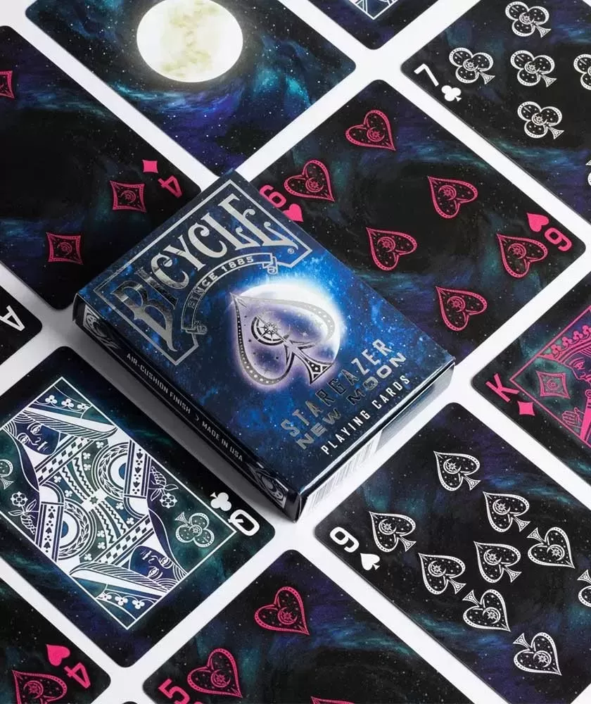 Bicycle Stargazer NEW MOON – Playing Cards este o colecție premium ce aduce o notă distinctă de rafinament și mister în jocurile tale de cărți. Acest set este inspirat de farmecul fazei de Lună Nouă, oferind o energie subtilă și captivantă ce transformă fiecare moment de joc sau spectacol de magie într-o experiență specială.
