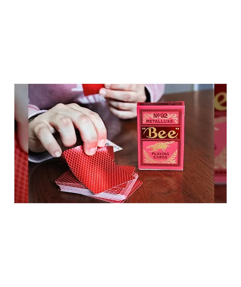Bee Red MetalLuxe – Playing Cards adaugă un plus de rafinament și eleganță oricărei partide de joc sau reprezentații de magie. Acest set premium emană o energie sofisticată, fiind destinat celor care apreciază detaliile artistice și calitatea excepțională în fiecare carte.