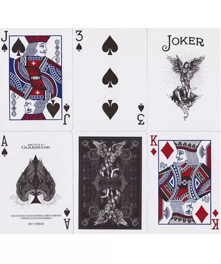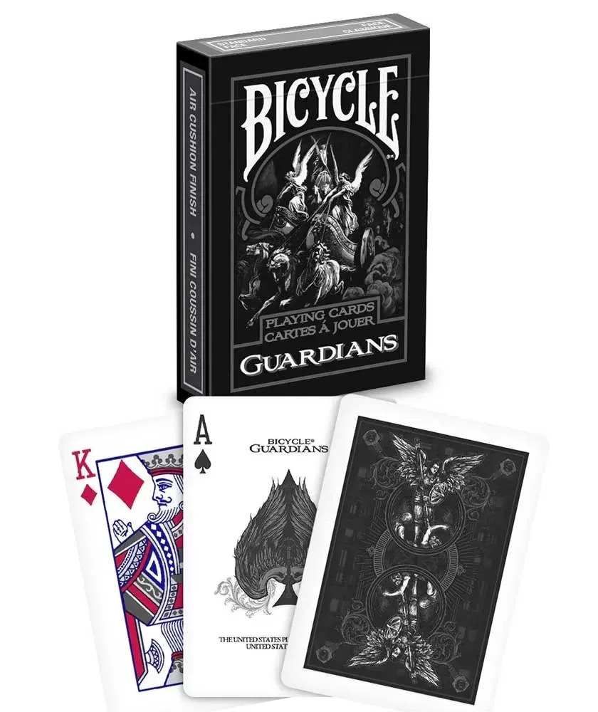 Bicycle Guardians – Playing Cards aduce un aer distinct și rafinat jocurilor tale, inspirat de imaginea îngerilor păzitori. Acest pachet premium oferă o experiență vizuală și tactilă superioară, potrivită atât colecționarilor, cât și pasionaților de jocuri clasice.