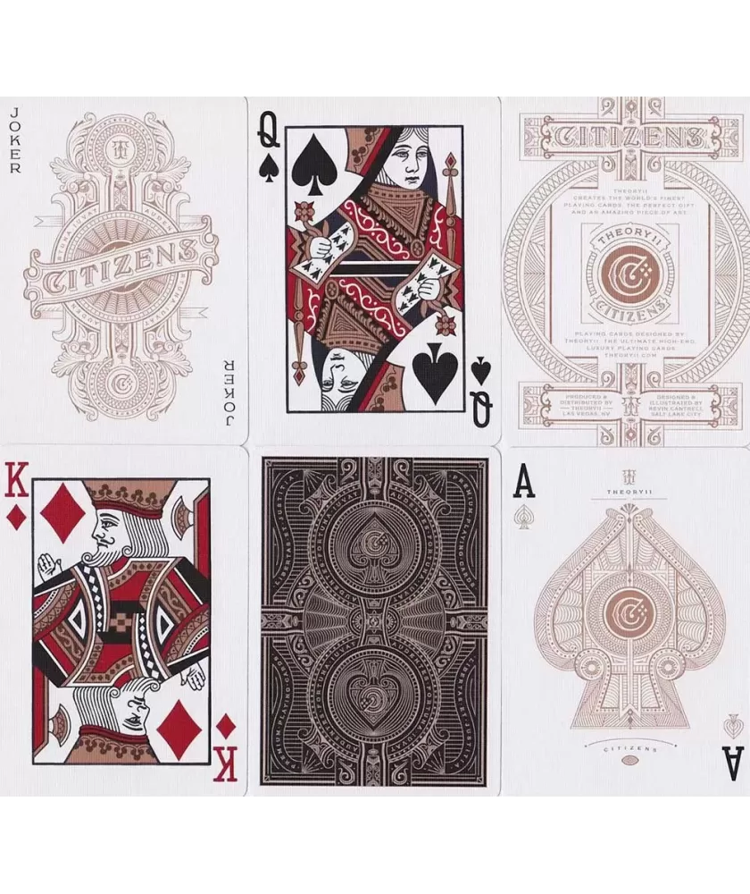 Fabricate în SUA, cărțile Citizens Theory11 sunt destinate colecționarilor și pasionaților care caută atât funcționalitate, cât și un design premium ce reflectă măiestria producătorului. Acest set invită la momente speciale, fie în timpul jocurilor, fie ca piesă de colecție rafinată.