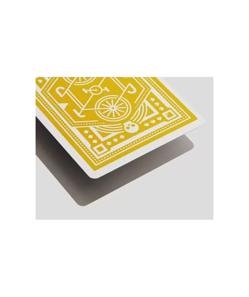 DKNG Yellow Wheels – Playing Cards oferă o experiență distinctă pentru cei care apreciază arta manevrării cărților. Acest set premium, rezultat al colaborării dintre studioul DKNG din California și Art of Play, este conceput pentru performanță și stil, fiind ideal pentru cardistry, trucuri și jocuri de cărți sofisticate.