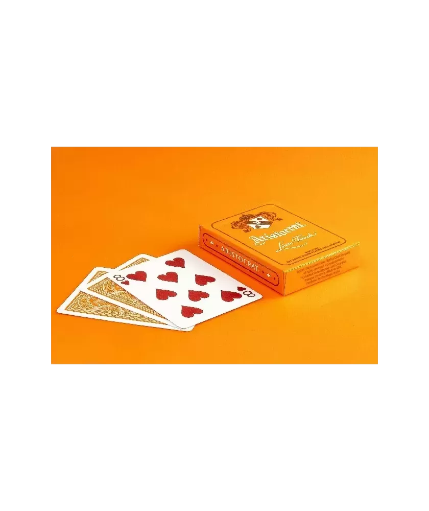 Realizate dintr-un carton special crush pentru o manevrabilitate optimă, cărțile păstrează modelul tradițional al Aristocrat, cu o notă distinctivă prin varianta de spate și un 4 de Inimă Roșie cu design unic. Setul conține 52 de cărți și doi Jokeri identici, fiind ideal atât pentru jocuri, cât și pentru colecționare.