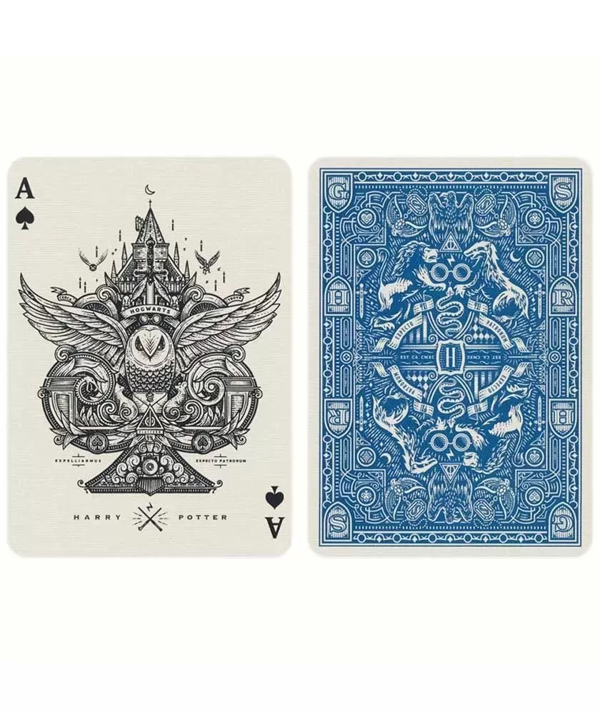 Harry Potter Blue Ravenclaw Theory 11 – Playing Cards aduce în prim-plan farmecul și rafinamentul Casei Ravenclaw, perfect pentru colecționari și pasionați ai universului magic. Acest set premium impresionează prin designul său artistic, care reflectă cu fidelitate detaliile și simbolurile ce definesc casa albastră.