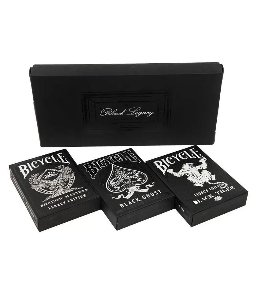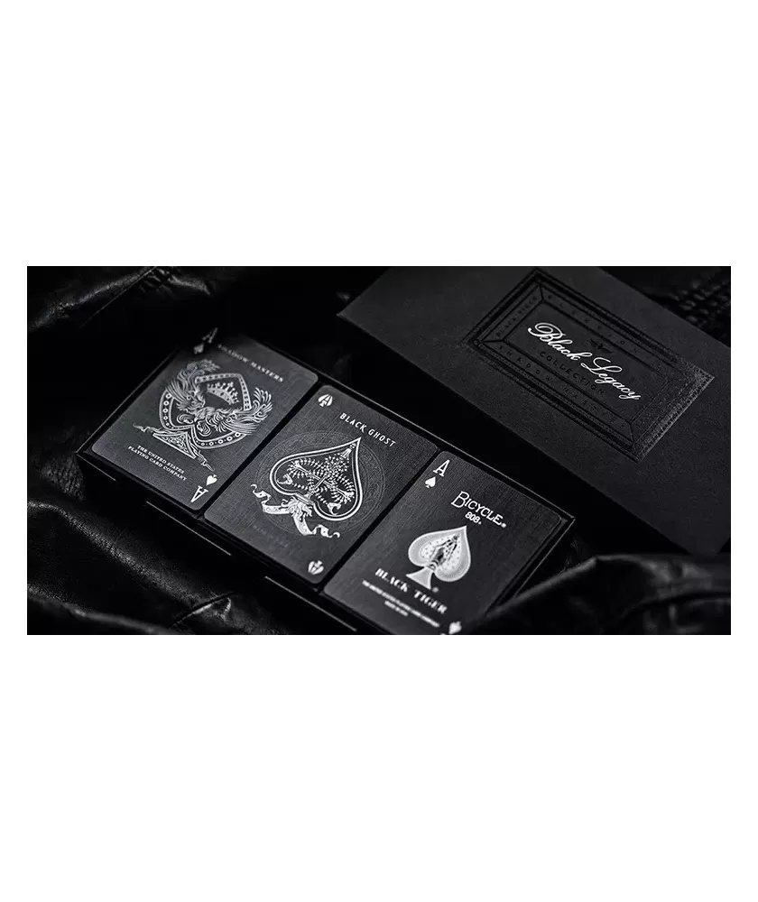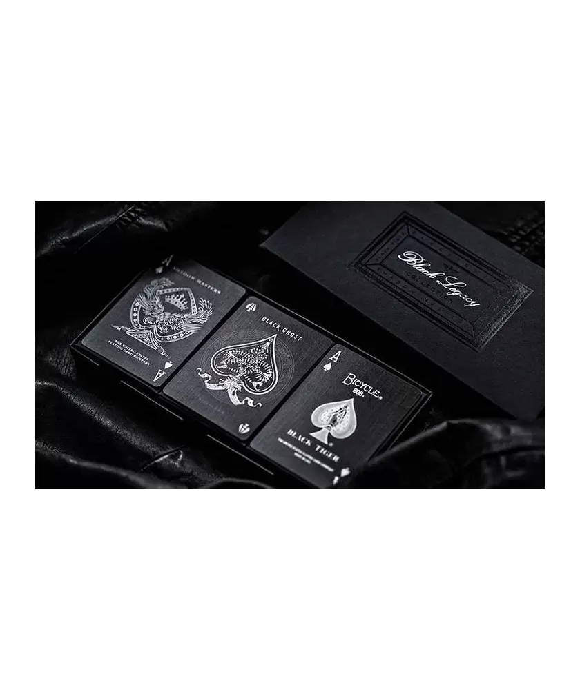 Setul Black Legacy Ellusionist – Playing Cards aduce o experiență rafinată pasionaților de jocuri de cărți și colecționari printr-un design ce celebrează evoluția și inovația în arta cartilor de joc. Acest set unic reunește trei pachete distincte – Shadow Masters, Black Tiger și Black Ghost – fiecare cu un concept vizual aparte și finisaje excepționale.