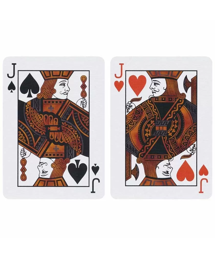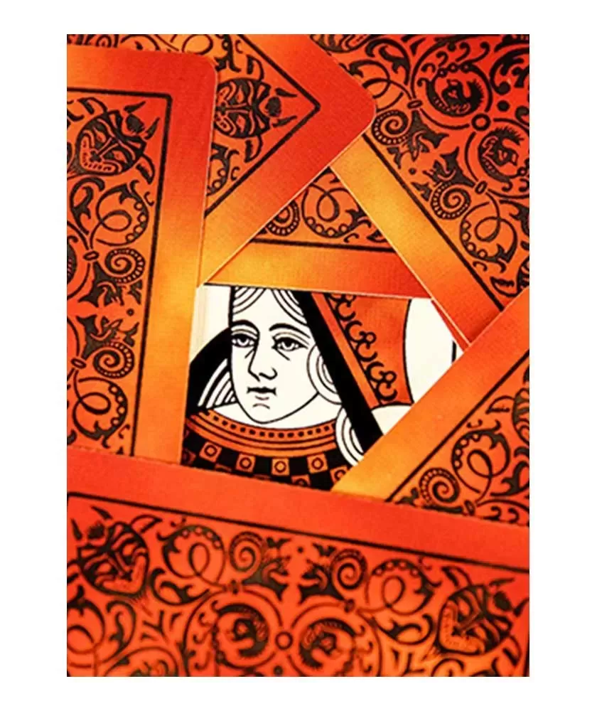Designul remarcabil combină nuanțe calde de roșu și portocaliu cu caractere negre mocnite, oferind un contrast elegant și un aspect sofisticat. Realizate pe platforma clasică Vanity Fair, aceste cărți beneficiază de finisajul Air Cushion și sunt produse în SUA de United States Playing Card Company, garantând durabilitate și manevrabilitate excelentă.