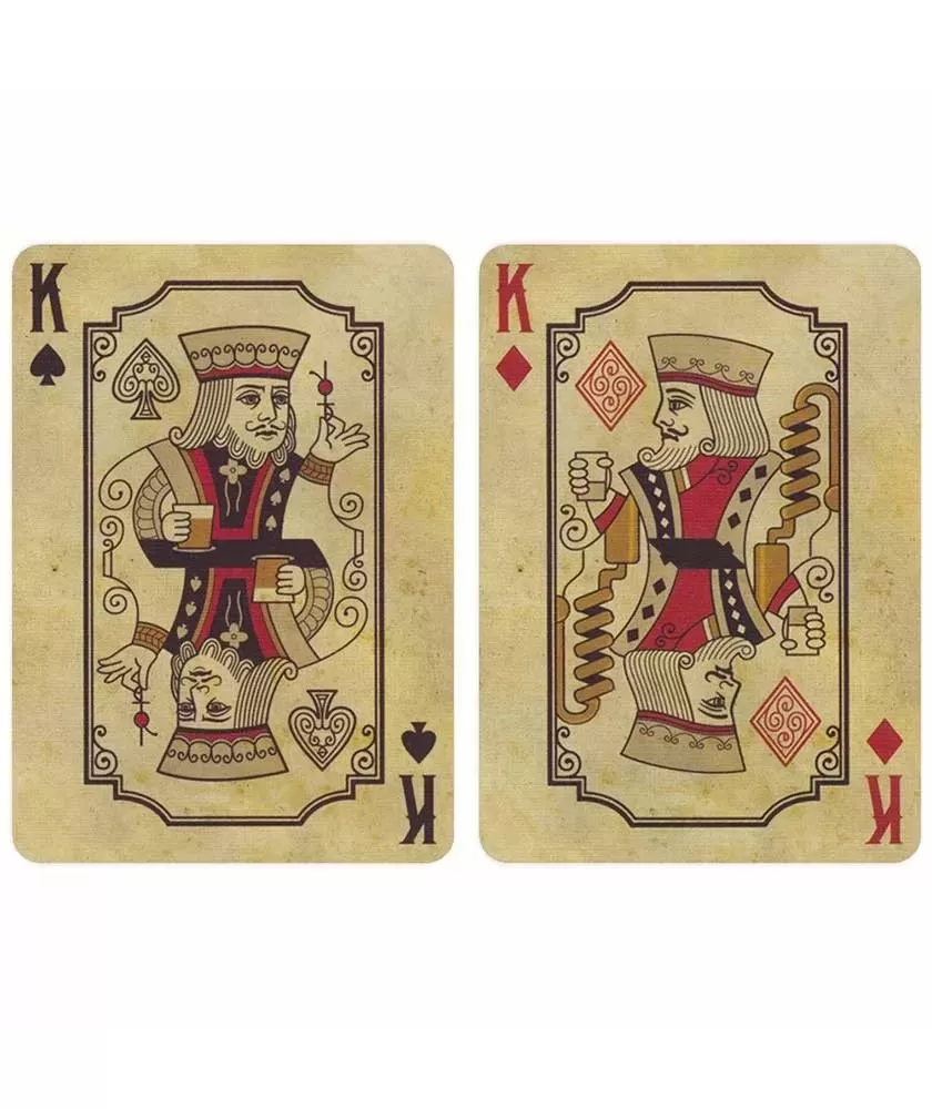 Designul spatelui cărților este atent realizat în stil vintage, în timp ce ilustrațiile cărților de curte reflectă o atmosferă autentică și rafinată. Fabricate în SUA, aceste cărți sunt printate pe carton premium Bicycle, cu un finisaj air-cushion ce asigură o manipulare și amestecare ușoară, pentru o experiență plăcută și profesională.