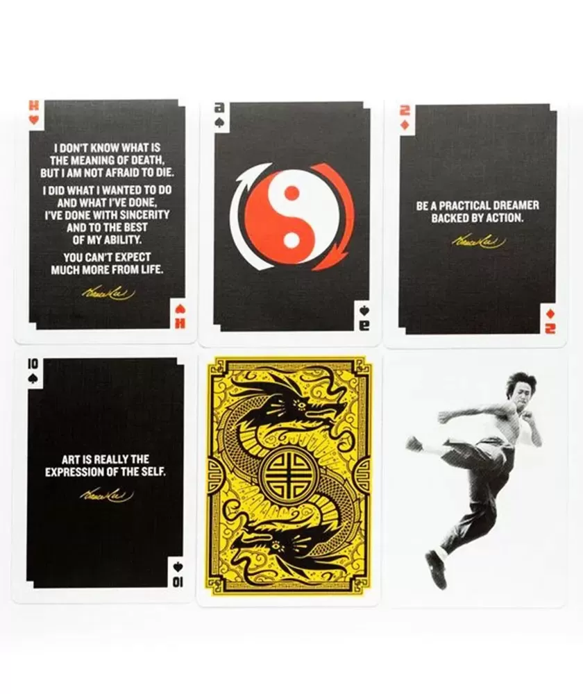 Fiecare carte din setul creat în colaborare cu Bruce Lee Enterprises și Art of Play reflectă atenția la detalii și măiestria producției americane, fiind fabricată sub licența oficială USPCC. Materialele de înaltă calitate asigură o manipulare excelentă și durabilitate, oferind o experiență tactilă rafinată. Designul inspirat de Bruce Lee îmbină eleganța și forța, fiind potrivit atât pentru jocuri, cât și pentru colecționare.