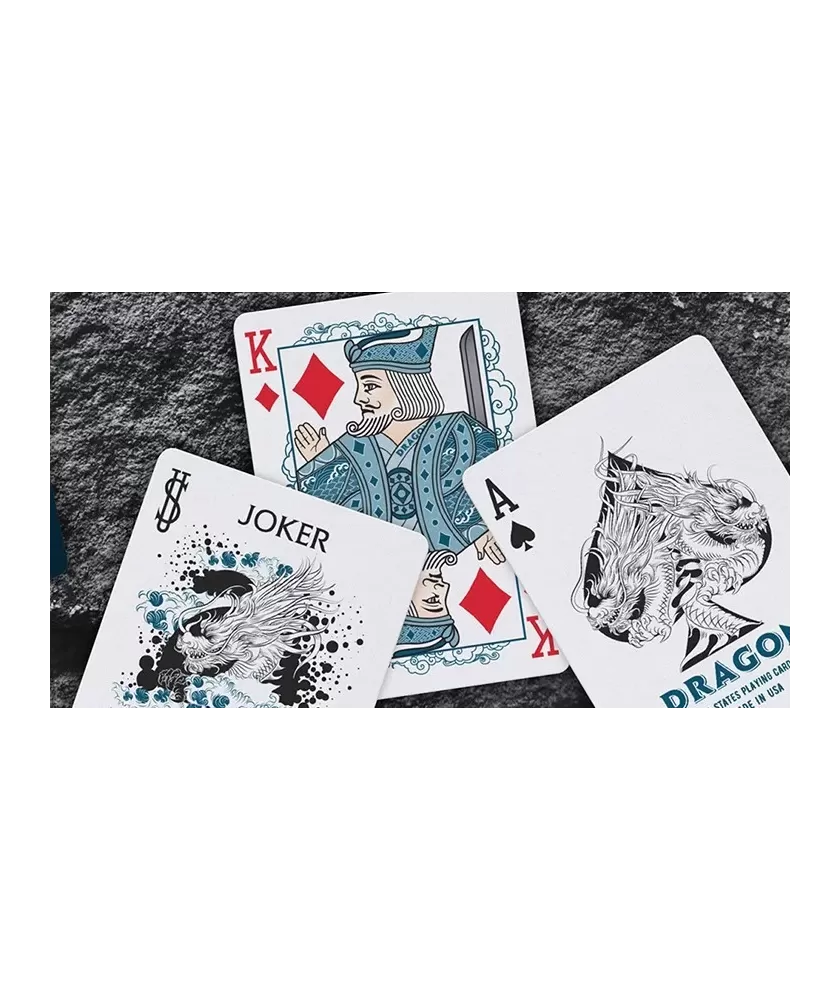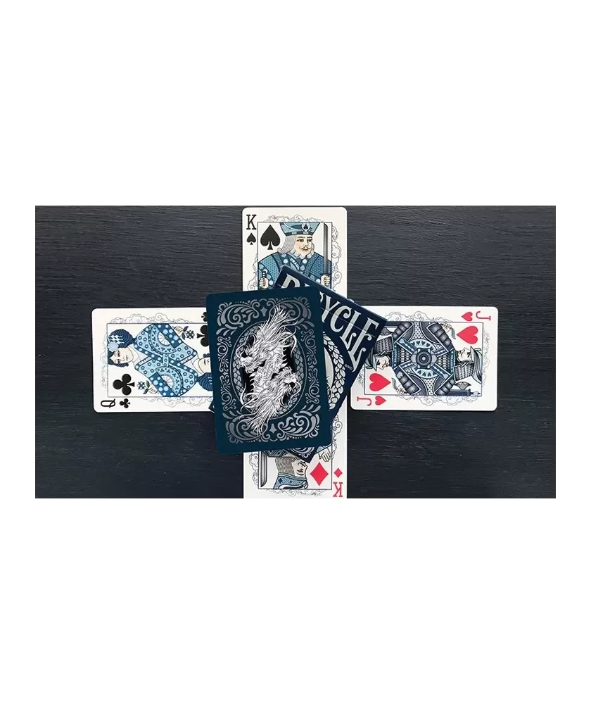 Fiecare carte din setul Bicycle Dragon este imprimată pe suportul clasic Bicycle, recunoscut pentru rezistență și finisajul Air Cushion, care asigură o manevrare ușoară și durabilitate. Designul artistic al cărților de curte prezintă creaturi mitologice, realizate cu atenție la detaliu, iar cutia în relief completează aspectul sofisticat al acestui pachet.