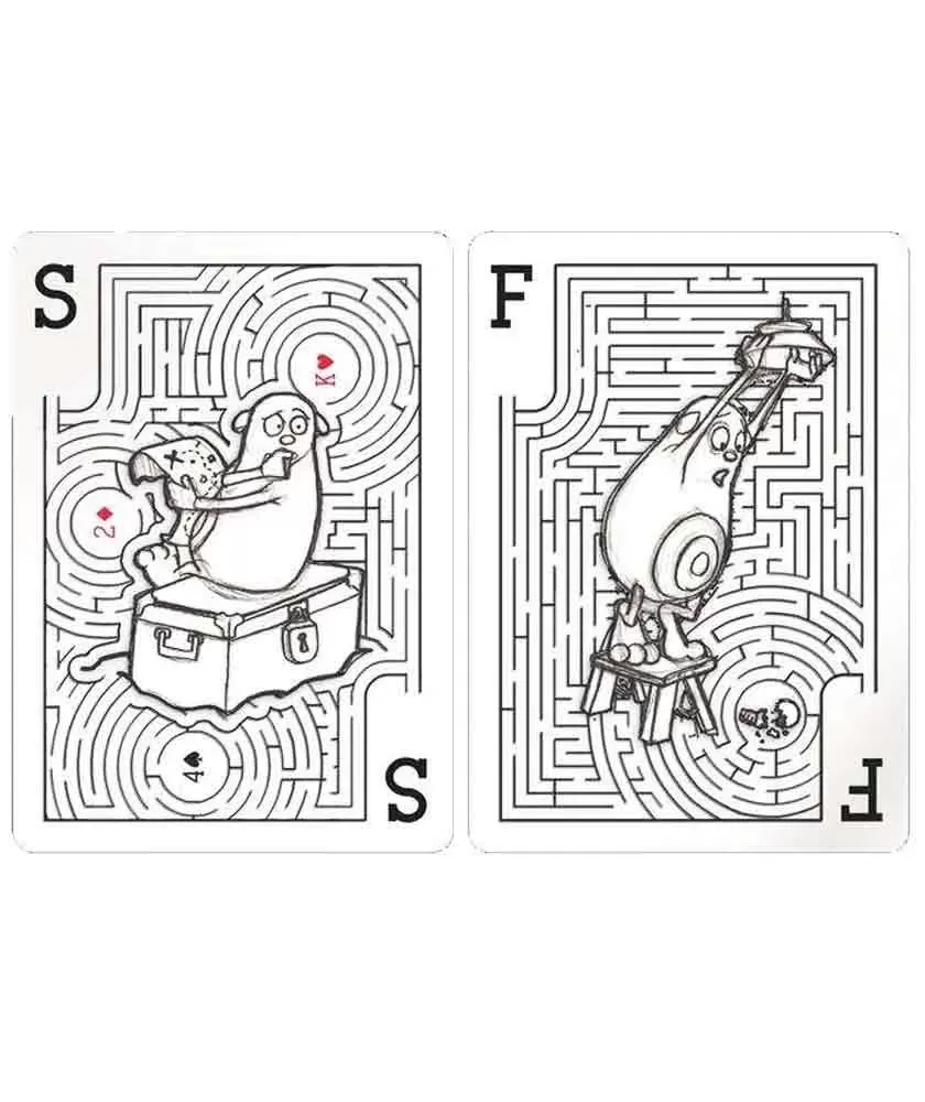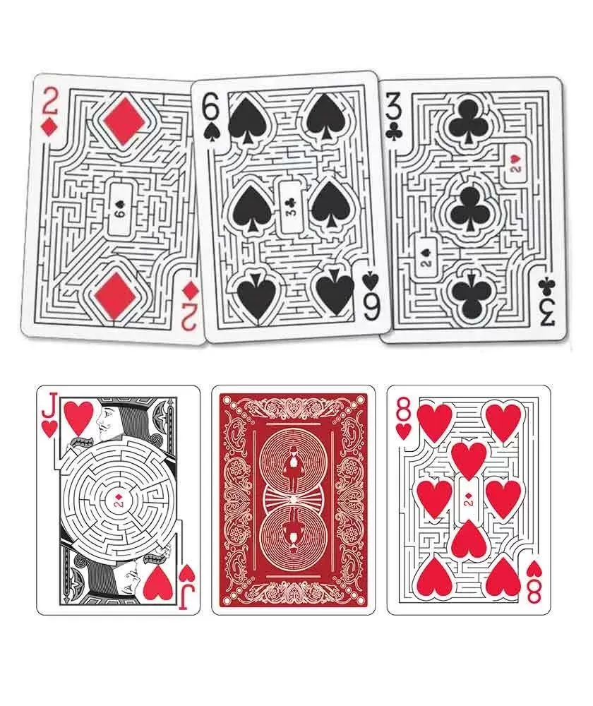 Fiecare dintre cele 52 de cărți ascunde un labirint diferit, conceput cu atenție și creativitate, iar cele două jokeri completează un labirint extins care leagă întregul pachet. Realizat cu materiale de calitate superioară, Bicycle Mazing impresionează prin precizia detaliilor și finisajul premium, fiind ideal pentru colecționari, magicieni și pasionați de jocuri de cărți cu un plus artistic.