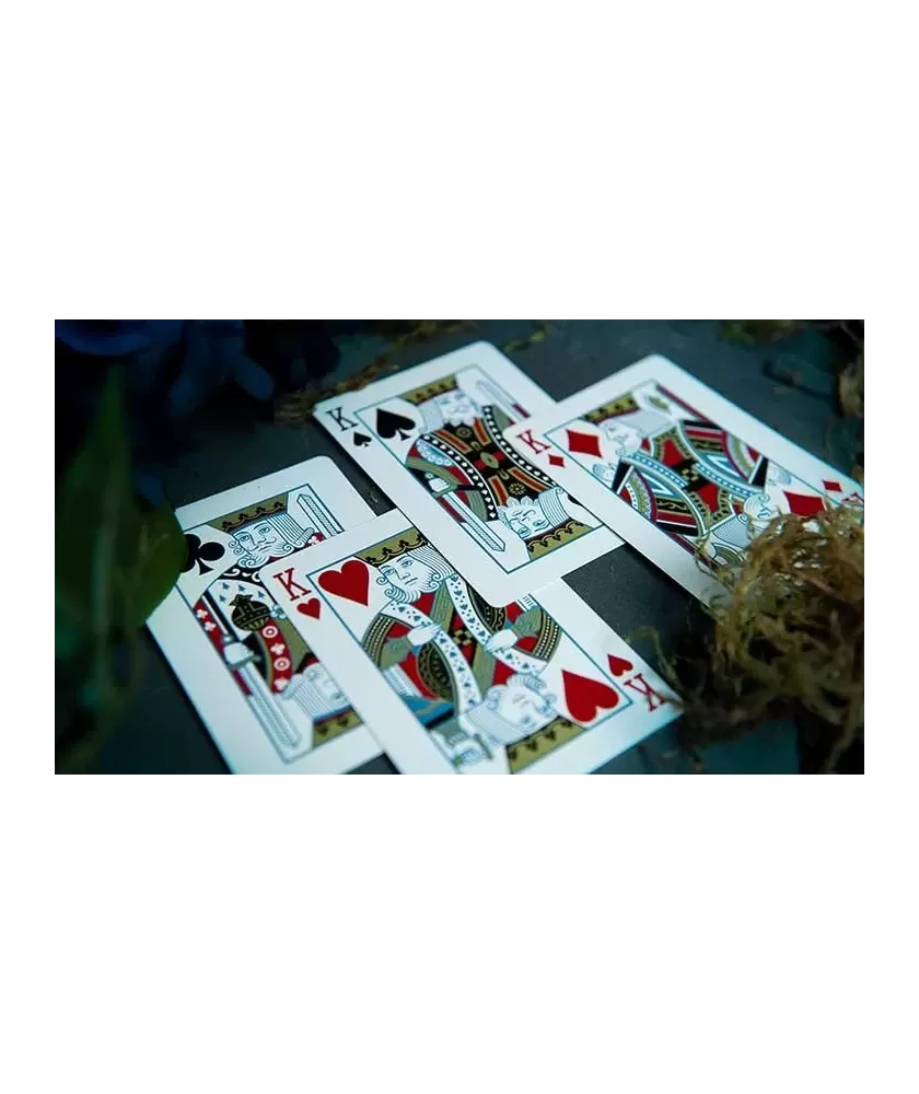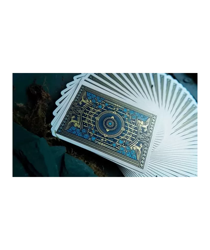 Realizate de Cartamundi în Belgia, aceste cărți premium folosesc cartonul True Linen B9 Slimline, ideal pentru fanning și handling de calitate superioară. Designul creat de Rick Davidson se remarcă prin cerneala metalică aurie și albastră, margini subtiri și un spate one way, oferind un aspect distinctiv și funcționalitate excelentă. Pachetul include doi jokeri speciali și o carte „abandoned”, adăugând unicitate și valoare artistică întregului set.