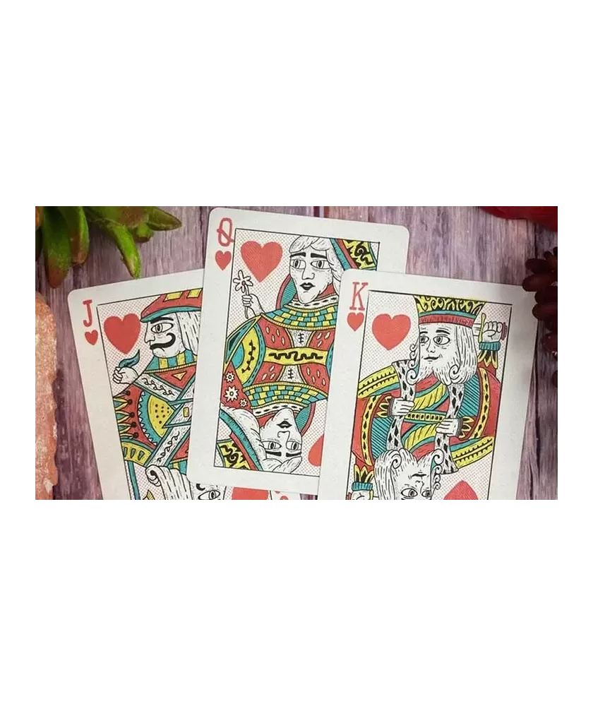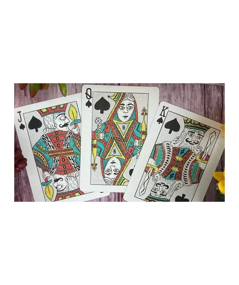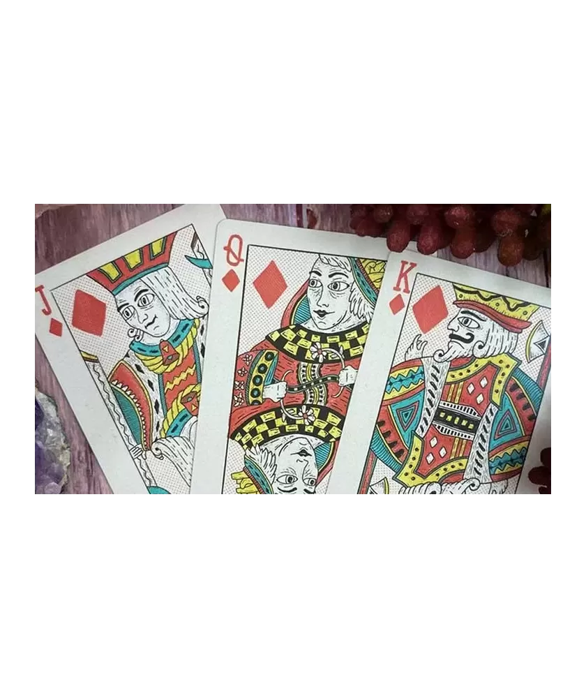 Fiecare carte din Broken Crowns este creată manual, cu un design cromatic sofisticat, ce îmbină armonios nuanțe ce se completează vizual într-un mod rafinat. Imprimarea este realizată de USPCC, pe suportul clasic Bicycle din carton premium, asigurând durabilitate și o experiență tactilă plăcută.