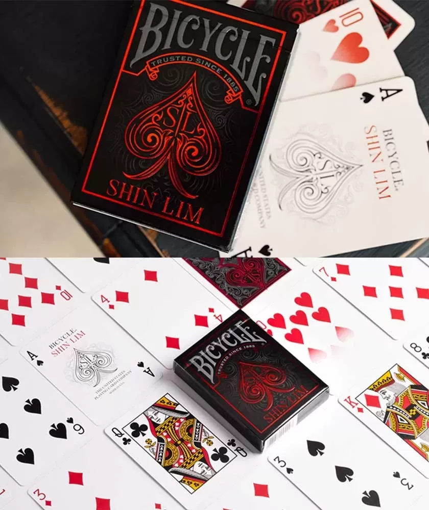 Fabricate de brandul Bicycle, renumit pentru calitatea superioară și atenția la detalii, aceste cărți premium combină designul sofisticat cu materiale durabile, realizate în SUA. Pachetul include și o carte gaff specială, iar prin scanarea codului QR din interior, vei avea acces la un tutorial exclusiv susținut chiar de Shin Lim, pentru a explora tehnici și trucuri avansate.