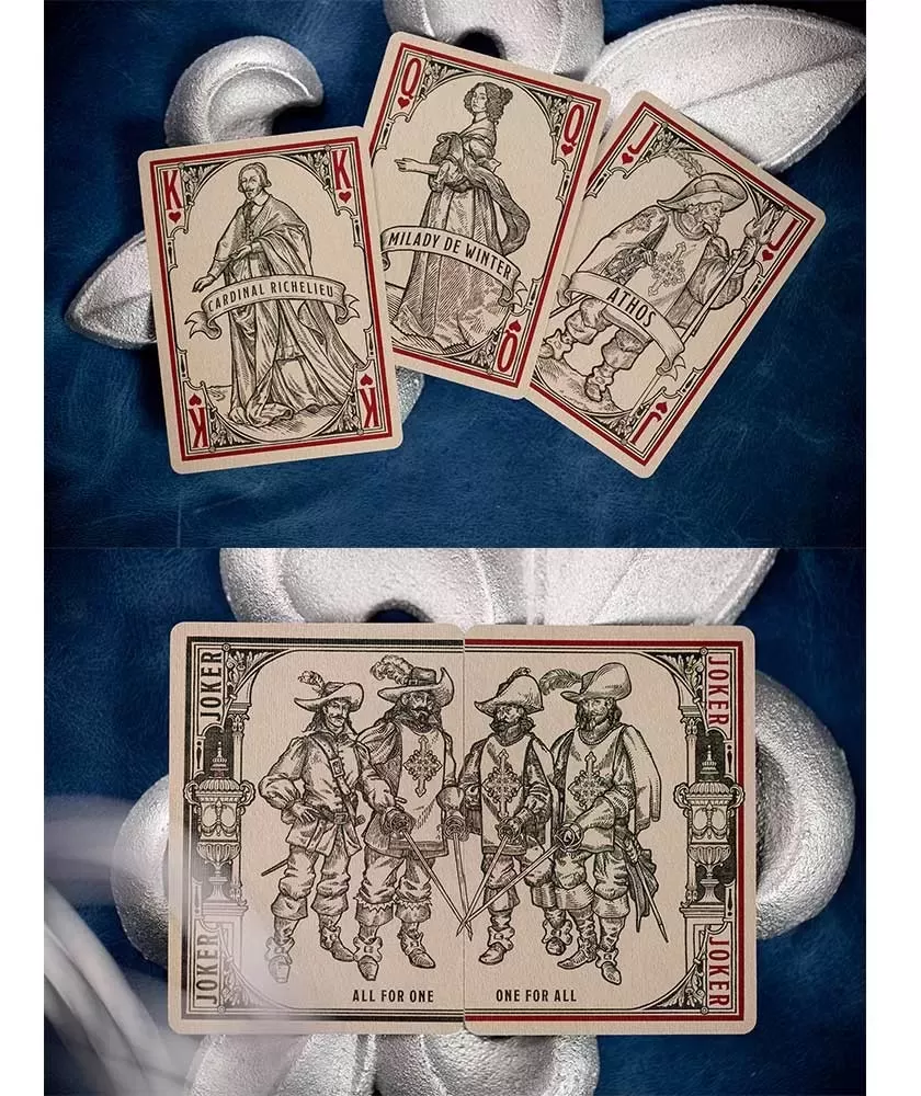 3 Musketeer by Kings Wild Project – Playing Cards aduce un omagiu artistic și premium poveștii clasice a celor trei muschetari, oferind o experiență rafinată atât colecționarilor, cât și pasionaților de jocuri de cărți. Acest pachet emană o atmosferă de mister și aventură, ilustrând cu măiestrie personajele îndrăgite într-un stil grafic unic și detaliat.
